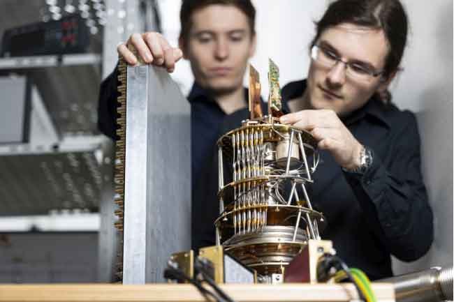 摘要:要證明量子計(jì)算機(jī)的實(shí)用價(jià)值,需要數(shù)百萬個(gè)量子比特,這還需要走很長(zhǎng)的路,其中一個(gè)問題是晶片上的量子位必須彼此非常接近。研究人員現(xiàn)在已經(jīng)成功地在量子芯片上將電子傳輸了幾微米,為解決這個(gè)問題邁出了重要的一步。 要證明量子計(jì)算機(jī)的實(shí)用價(jià)值,需要數(shù)百萬個(gè)量子比特?蓴U(kuò)展性是未來設(shè)備開發(fā)中的最大挑戰(zhàn)之一。為了將量子位耦合在一起,晶片上的量子位必須彼此非常接近。Forschungszentrum Jülich和RWTH亞琛大學(xué)的研究人員現(xiàn)在已經(jīng)朝著解決這個(gè)問題邁出了重要的一步,成功地在量子芯片上將量子信息載體——電子傳輸了幾微米。他們的“量子總線(quantum bus)”可能是實(shí)現(xiàn)百萬量子比特飛躍的關(guān)鍵部件。 對(duì)于某些任務(wù),量子計(jì)算機(jī)有可能大大超過傳統(tǒng)計(jì)算機(jī)的能力。但是,在它們能夠幫助解決現(xiàn)實(shí)世界問題之前,還有很長(zhǎng)的路要走。許多應(yīng)用需要具有數(shù)百萬量子比特的量子處理器。今天的原型僅僅提供了很少這樣的計(jì)算單元。 “目前,每個(gè)單獨(dú)的量子位通過幾條信號(hào)線連接到碗櫥大小的控制單元。這對(duì)幾個(gè)量子位仍然有效。但是,如果你想在芯片上放置數(shù)百萬個(gè)量子位,這就不再有意義了。因?yàn)檫@對(duì)量子糾錯(cuò)是必要的,”來自JARA量子信息研究所和亞琛工業(yè)大學(xué)的Lars Schreiber博士說。 在某些時(shí)候,信號(hào)線的數(shù)量會(huì)成為一個(gè)瓶頸。與微小的量子位相比,這些線占據(jù)了太多的空間。一個(gè)量子芯片不可能有數(shù)百萬個(gè)輸入和輸出——一個(gè)現(xiàn)代經(jīng)典芯片只包含大約2000個(gè)輸入和輸出。Schreiber與Forschungszentrum Jülich和RWTH Aachen大學(xué)的同事一起進(jìn)行了幾年的研究,以找到這個(gè)問題的解決方案。 他們的總體目標(biāo)是將部分控制電子設(shè)備直接集成到芯片上。這種方法基于由硅和鍺制成的所謂半導(dǎo)體自旋量子位,這是相對(duì)很小的一種量子位。制造過程在很大程度上與傳統(tǒng)的硅處理器相匹配。當(dāng)實(shí)現(xiàn)非常多的量子位時(shí),這被認(rèn)為是有利的。但首先,必須克服一些基本障礙。 僅由粒子的接近引起的自然糾纏被限制在非常小的范圍內(nèi),大約100納米。為了耦合量子位,它們現(xiàn)在必須彼此靠得很近。Schreiber說,“根本沒有空間來安裝我們想要安裝的額外控制電子設(shè)備! 為了分離量子位,JARA量子信息研究所(IQI)提出了量子穿梭的想法。這種特殊的組件應(yīng)該有助于在更遠(yuǎn)距離的量子位之間交換量子信息。研究人員已經(jīng)研究“量子總線”(quantum bus)五年了,并且已經(jīng)申請(qǐng)了10多項(xiàng)專利。這項(xiàng)研究是作為歐洲QuantERA聯(lián)盟Si-QuBus的一部分開始的,現(xiàn)在正在聯(lián)邦教育和研究部(BMBF)的國(guó)家項(xiàng)目QUASAR中與工業(yè)伙伴一起繼續(xù)進(jìn)行。 “從一個(gè)量子位到下一個(gè)量子位需要橋接大約10微米。理論上,用這樣的架構(gòu)可以實(shí)現(xiàn)數(shù)百萬個(gè)量子位。我們最近與Forschungszentrum Jülich的電路工程師合作預(yù)測(cè)了這一點(diǎn),”IQI研究所主任Hendrik Bluhm教授解釋道。代爾夫特大學(xué)(TU Delft)和英特爾公司的研究人員也得出了同樣的結(jié)論。 Lars Schreiber和他的團(tuán)隊(duì)已經(jīng)邁出了重要的一步,他們成功地將一個(gè)電子傳輸了5000次,傳輸距離為560納米,沒有任何重大誤差。這相當(dāng)于2.8毫米的距離。該結(jié)果發(fā)表在科學(xué)雜志npj量子信息上。 一個(gè)重要的改進(jìn)是:電子由四個(gè)簡(jiǎn)單的控制信號(hào)驅(qū)動(dòng),這與以前的方法不同,在更長(zhǎng)的距離上不會(huì)變得更復(fù)雜。這是很重要的,否則將需要大量的控制電子設(shè)備,這將占用太多的空間或者根本不能集成在芯片上。 這項(xiàng)成就基于一種新的電子傳輸方式。“到目前為止,人們一直試圖引導(dǎo)電子專門繞過它們路徑上的單個(gè)擾動(dòng);蛘咚麄儎(chuàng)造了一系列所謂的量子點(diǎn),讓電子從一個(gè)量子點(diǎn)跳到另一個(gè)量子點(diǎn)。這兩種方法都需要精確的信號(hào)調(diào)整,導(dǎo)致控制電子設(shè)備過于復(fù)雜,”Lars Schreiber解釋道!跋啾戎,我們產(chǎn)生的是一種勢(shì)波,電子在這種勢(shì)波上簡(jiǎn)單地掠過各種干擾源。對(duì)于這種均勻的波,幾個(gè)控制信號(hào)就足夠了;只需要四個(gè)正弦脈沖! 下一步,物理學(xué)家將證明電子自旋中編碼的量子位信息在運(yùn)輸過程中不會(huì)丟失。理論計(jì)算已經(jīng)表明,在一定的速度范圍內(nèi),這在硅中是可能的。因此,量子總線為可擴(kuò)展的量子計(jì)算機(jī)架構(gòu)鋪平了道路,這種架構(gòu)也可以作為幾百萬量子位的基礎(chǔ)。 查詢進(jìn)一步信息,請(qǐng)?jiān)L問英文網(wǎng)站https://www.fz-juelich.de/en/news/archive/press-release/2022/key-element-for-a-scalable-quantum-computer。(鐠元素)