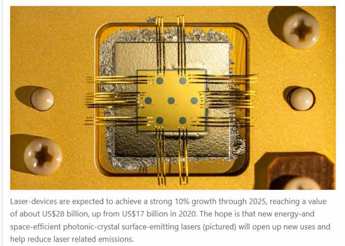 【產(chǎn)通社,2月12日訊】由于CO2激光器的維護超過了其在材料加工方面的成本優(yōu)勢,而光纖激光器包含數(shù)百個激光二極管,導致高能耗, ,三菱電機的高級首席技術專家Koji Yasui至少10年來一直懷疑,節(jié)能光子激光器是基于激光的制造業(yè)不可避免的下一步,感覺全球?qū)D(zhuǎn)向光子激光器。 光子學和量子技術 激光使用氣體、固體或液體作為光學放大的來源,產(chǎn)生由光子組成的相干激光束,光子是電磁輻射的最小離散量或量子。例如,二氧化碳(CO2)激光器使用氣體進行光學放大,而更節(jié)能、更緊湊的光子激光器使用半導體晶體直接放大光束。 今天,基于激光的制造業(yè)主要由二氧化碳激光器和光纖激光器主導——即使是常規(guī)任務,如在智能手機的電路板上打小孔。Yasui認為,直接利用電力的光子激光器有可能降低制造成本。這樣,激光切割的成本和排放減半是可能的,因為它們體積小,也許更多。 然而,在實現(xiàn)這些成本節(jié)約之前,必須克服重大的技術障礙。1999年京都大學(Kyoto University)發(fā)明了光子晶體表面發(fā)射激光器(PCSELs ),改善了實驗室的光子光束質(zhì)量。然而,為了使它們被制造業(yè)有效地利用,需要解決功率輸出和光束質(zhì)量之間的權衡。 克服這一點是“光子學和量子技術為社會服務5.0”項目的主要目標。這是一個為期五年、由日本政府資助的、關于光技術工業(yè)應用的學術界-產(chǎn)業(yè)界合作項目,Yasui是其中的一個子項目主任。 由于輔助駕駛和自動駕駛汽車的增長,預計到2025年,汽車行業(yè)對光子激光傳感器的需求將每年增長21%。 盡管來自京都大學的項目參與者正在生產(chǎn)的光子激光器仍然沒有完全解決與制造相關的問題,但在2021年,該小組使用了鏡子重塑了PCSEL微結構以減少光損失。通過這種設置,他們首次使用單芯片PCSEL成功加工了金屬表面。 Yasui說,下一步是擴大激光器,開發(fā)包裝和冷卻系統(tǒng)。與此同時,該方案產(chǎn)生了許多正在使用或處于尖端的技術。Yasui指出,PSCEL傳感器最早將于明年開始出現(xiàn)在商業(yè)設備中。 激光設備將強勁增長 美國專利數(shù)量表明,新的激光技術有發(fā)展空間。自20世紀70年代以來,激光專利通常每十年翻一番,但在2020年之前的十年里,申請量下降了約17%。 “這些事情是一波一波來的,”Yasui解釋道。他解釋說,許多激光制造技術是激光市場的最大部分,在20-30年前就進入了商業(yè)市場。“一旦安裝,人們往往會堅持使用有效的系統(tǒng),因此對新系統(tǒng)的需求往往會下降。”但是幾十年后,隨著新的排放目標的實施,可能會有新的投資空間。 總部位于維爾紐斯的立陶宛激光軟件開發(fā)商Direct Machining Control的首席執(zhí)行官arnas vake lis指出,日本在這股浪潮中處于有利地位。他解釋說,雖然自20世紀90年代的鼎盛時期以來,日本在激光加工技術生產(chǎn)方面已經(jīng)落后于美國和德國的競爭對手,但它仍然是相關光學和光子學行業(yè)的主要力量。例如,光子學領域廣泛涵蓋由日本研究人員開創(chuàng)的激光二極管和發(fā)光二極管、光纖、光學傳感器、顯示器和太陽能電池等技術。從制造商總部所在的國家來看,日本在2015年以大約30%的全球市場份額領先。 預計到2025年,激光設備將實現(xiàn)10%的強勁增長,價值將從2020年的170億美元上升至約280億美元。希望新的節(jié)能和節(jié)省空間的PSCEL光子晶體表面發(fā)射激光器將開辟新的用途,并有助于減少激光相關的輻射。 Yasui指出,最近的世界事件也加速了對高效、安全和靈活的智能工廠新技術的需求。例如,烏克蘭——全球主要的石油和天然氣來源——戰(zhàn)爭突顯了能源供應中斷的可能性,“而新冠肺炎疫情強化了向遠程操作設施轉(zhuǎn)移的愿望”,他表示。 日本五年計劃開發(fā)的許多技術可以給這里帶來好處。用于光探測和測距(LiDAR)的獨特小型高效PCSELs為遠程引導的工廠機器人和電動汽車提供了新的選擇。材料處理人工智能(AI)和光子通信系統(tǒng)也正在進入現(xiàn)實世界的使用測試案例,并可能為高度數(shù)字化的生產(chǎn)范式提供更靈活的系統(tǒng)和前所未有的數(shù)據(jù)安全性。 查詢進一步信息,請訪問官方網(wǎng)站 http://www.nature.com/articles/d42473-022-00113-1。(Robin Zhang,產(chǎn)通數(shù)造)