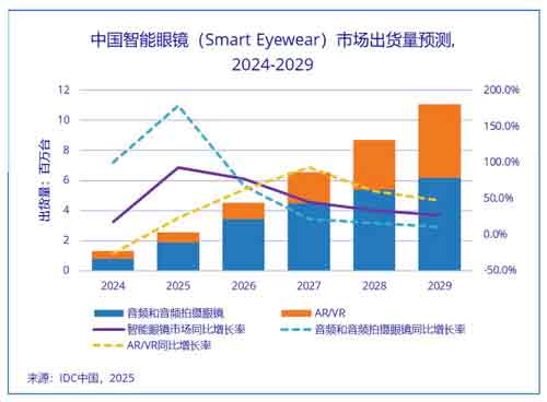 市場規(guī)模:2025年全球消費級AI眼鏡出貨量達500萬臺,中國市場90萬臺;2026年中國智能眼鏡市場出貨量預計290.7萬臺,同比增長 121.1%,AI滲透率突破60%。