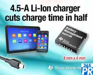 【產(chǎn)通社,4月11日訊】德州儀器(TI)官網(wǎng)消息,其bq2419x系列新型鋰離子電池充電器集成電路 (IC) ——與其它充電器解決方案相比,可將智能手機及平板電腦充電時間縮短一半。bq2419x系列額定4.5A輸出、20V輸入開關(guān)模式充電器具有I2C接口并提供USB移動(OTG)支持,可為移動電源及電源組,4G LTE路由器、Wi-Fi揚聲器、便攜式醫(yī)療以及工業(yè)設(shè)計等各種應(yīng)用實現(xiàn)更快、更低溫度的充電。