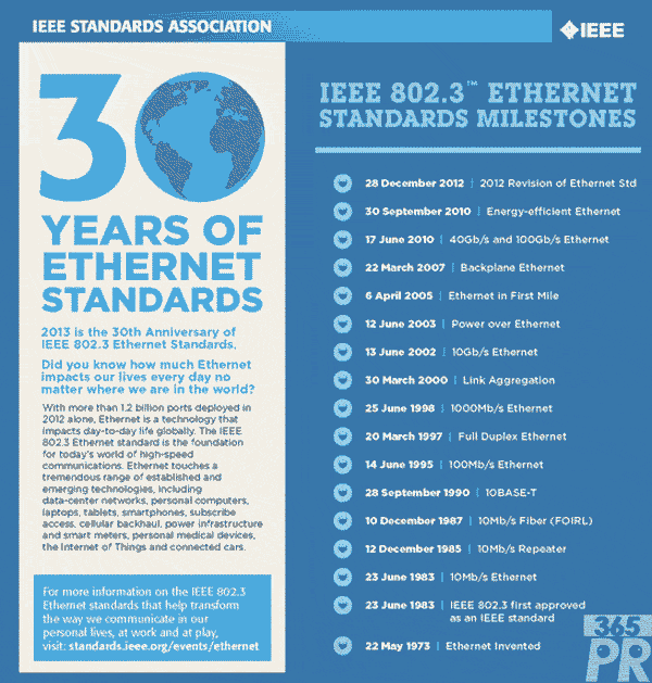 查詢進(jìn)一步信息,請?jiān)L問官方網(wǎng)站http://standards.ieee.org/news/2013/802.3_30anniv.html