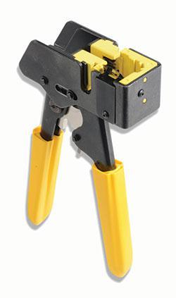 用于平口、斜口以及Keystone的 MAX模塊,高耐用的MAX TurboTool的設(shè)計便于適當(dāng)?shù)哪K插入,并為端接過程提供一個穩(wěn)定的平臺。這個非沖擊的過程使得通常在傳統(tǒng)下沖的打線端接中會發(fā)生的毀壞和損傷減至最小。這個工具創(chuàng)新的固定夾能穩(wěn)固模塊確保端接之前的適當(dāng)對準(zhǔn)和定位,其后部的線纜通道能支持全方位的5e類和6類非屏蔽線纜的尺寸。MAX TurboTool的明確的棘輪運(yùn)動減少了手力,并提供了積極的聽覺和觸覺的反饋來確保端接流程已經(jīng)完成。