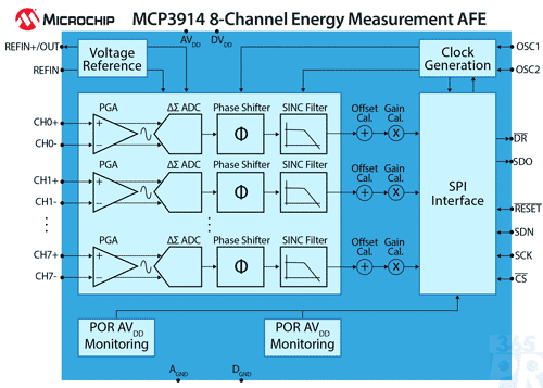Microchip同時(shí)推出了兩款新工具:MCP3913評(píng)估板(部件編號(hào):ADM00522)和MCP3914評(píng)估板(部件編號(hào):ADM00523),為設(shè)計(jì)人員應(yīng)用新型AFE產(chǎn)品開發(fā)能源系統(tǒng)提供支持。