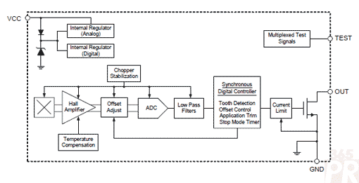 該單元件霍爾IC和磁珠配置可根據(jù)鐵磁目標(biāo)產(chǎn)生的磁信號切換。該IC還帶有一個低帶寬濾波器,可提高抗干擾度和傳感器的信噪比。精密的數(shù)字電路設(shè)計(jì)可消除目標(biāo)幾何形狀不連續(xù)性、磁體和系統(tǒng)偏差以及熱梯度帶來的不利影響。信號處理可提供獨(dú)立于氣隙的真零速性能,并可就汽車應(yīng)用中常見的操作條件,尤其是凸輪傳感應(yīng)用,動態(tài)適應(yīng)器件性能。