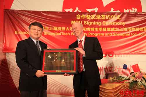 江綿恒校長(zhǎng)、上海市科學(xué)技術(shù)委員會(huì)副主任陳鳴波先生、王曦院士、Scott McGregor先生、博通公司大中華區(qū)總裁、全球銷售高級(jí)副總裁李廷偉博士共同出席了簽字儀式。博通公司全球銷售執(zhí)行副總裁Michael Hurlston、上?萍即髮W(xué)副校長(zhǎng)印杰博士等分別代表各方在備忘錄上進(jìn)行了簽字。