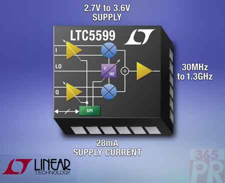 【產(chǎn)通社,8月12日訊】凌力爾特公司(Linear Technology Corporation)消息,其LTC5599低功率I/Q調(diào)制器使電池供電型發(fā)送器能夠在30MHz至1.3GHz頻帶工作,在功耗、邊帶抑制、載波泄漏和動(dòng)態(tài)范圍性能方面實(shí)現(xiàn)了新的突破。LTC5599調(diào)制器用單一2.7-3.6V電源供電,僅吸取28mA電流,這比其他同類(lèi)解決方案低60%,而且絲毫不犧牲性能。LTC5599在未經(jīng)校準(zhǔn)的情況下可提供出眾的-52.6dBc固有邊帶抑制和-51.5dBm載波泄漏。憑借內(nèi)置校準(zhǔn)資源,性能可進(jìn)一步分別改善至-60dBc和-65dBm。此外,該器件的輸出實(shí)現(xiàn)了卓越的-156dBm/Hz噪聲層,OIP3為20.8dBm,從而提供了卓越的發(fā)送器性能。