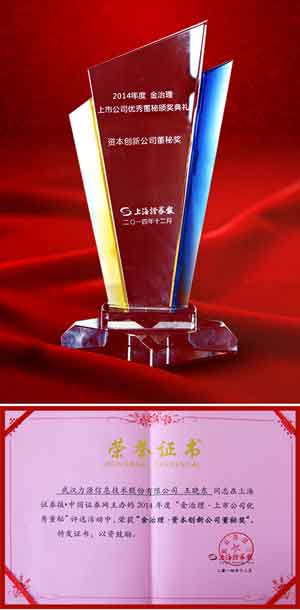 【產(chǎn)通社,12月31日訊】武漢力源信息技術(shù)股份有限公司(Wuhan P&S Information Technology;股票代碼:300184)官網(wǎng)消息,其由上海證券交易所、深圳證券交易所、中國(guó)上市公司協(xié)會(huì)指導(dǎo),上海證券報(bào)、中國(guó)證券網(wǎng)主辦的 “2014年金治理—上市公司優(yōu)秀董秘評(píng)選”活動(dòng)12月26日在上海證券交易所舉行了隆重的頒獎(jiǎng)典禮。武漢力源信息技術(shù)股份有限公司董事、副總、董事會(huì)秘書(shū)王曉東先生在2600家上市公司的董秘中脫穎而出,獲得“2014年金治理—資本創(chuàng)新公司董秘”獎(jiǎng)項(xiàng)。