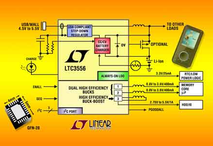 LTC3556采用緊湊、扁平(0.75mm) 4mm x 5mm QFN-28封裝,有現(xiàn)貨供應(yīng)。以1,000片為單位批量購買,每片價格為4.80美元。更多信息,請登錄www.linear.com.cn。