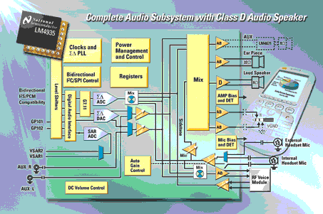美國國家半導體公司(National Semiconductor Corporation)2006年1月10日宣布推出業(yè)界最小巧的音頻子系統(tǒng),其優(yōu)點是不但內置單聲道D類(Class D)揚聲器驅動器,而且還具備智能電話和網絡電話所有必要的模擬及數字音頻功能。美國國家半導體在另一相關新聞發(fā)稿中詳細介紹這款子系統(tǒng)所采用的全新micro SMDxt封裝 (大小只有4mm x 4mm),并在該新聞發(fā)稿中表示,這種新封裝比現有的封裝小巧,可為電路板節(jié)省高達70%的板面空間。這款型號為LM4935的音頻子系統(tǒng)是Boomer音頻功率放大器系列的最新型號,其特點是只需極少外置元件便可提供效果極為理想的輸出功率。