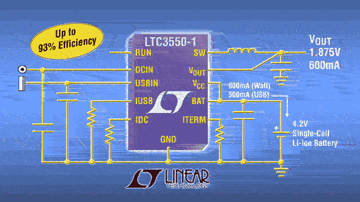 凌特帶同步600mA降壓轉換器的雙輸入鋰電充電器