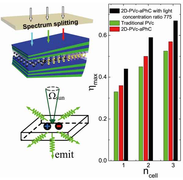 【產(chǎn)通社,11月15日訊】中國(guó)科學(xué)院微電子研究所(Microelectronice of Chinese Academy of Sciences)官網(wǎng)消息,新興的二維層狀半導(dǎo)體材料因其可通過(guò)厚度變化調(diào)控能帶結(jié)構(gòu),同時(shí)通過(guò)獨(dú)特的范德瓦耳斯結(jié)構(gòu)實(shí)現(xiàn)靈活的異質(zhì)集成功能設(shè)計(jì)、構(gòu)筑高效率的光伏單元,成為當(dāng)前的研究熱點(diǎn)。其中的關(guān)鍵科學(xué)問(wèn)題是如何有效控制自發(fā)輻射損失,從而提高光伏單元的光吸收效率。此外,基于二維材料異質(zhì)結(jié)光伏單元的效率極限及其相比于傳統(tǒng)半導(dǎo)體光伏結(jié)構(gòu)是否有優(yōu)勢(shì)尚不明確。  針對(duì)上述問(wèn)題,貴州民族大學(xué)劉江濤教授和微電子所吳振華研究員開(kāi)展了系列理論研究,提出了利用單層二硫化鉬構(gòu)筑準(zhǔn)一維光子晶體結(jié)構(gòu)實(shí)現(xiàn)光子局域態(tài)的方案,并通過(guò)轉(zhuǎn)移矩陣方法證明了該結(jié)構(gòu)的光發(fā)射和吸收效率較單層二硫化鉬提升2~3個(gè)量級(jí)[Scientific Report, 7:16391, (2017)],證明了通過(guò)金屬微腔可實(shí)現(xiàn)二維光伏單元的寬光譜增強(qiáng)吸收[Nanotechnology, 29:14401 (2018)]。  最近聯(lián)合研究團(tuán)隊(duì)提出了一種將二維材料異質(zhì)結(jié)與契型金屬微腔結(jié)合的新型光伏單元設(shè)計(jì)方案。該方案在極大增強(qiáng)二維異質(zhì)光伏單元光吸收的同時(shí),有效降低自發(fā)輻射立體角以及自發(fā)輻射立體角和太陽(yáng)光立體角的比值,從而降低光子吸收和再輻射導(dǎo)致的損耗。理論計(jì)算證明,新型光伏單元吸收效率極限大約為傳統(tǒng)光伏器件的1.1X倍。在此基礎(chǔ)上,團(tuán)隊(duì)進(jìn)一步提出了通過(guò)易于集成的普通光聚焦系統(tǒng)進(jìn)行優(yōu)化的方案,優(yōu)化后的吸收效率可達(dá)到傳統(tǒng)光伏單元在完美聚焦理論假設(shè)下的性能水平。由于自發(fā)輻射損失隨著光伏單元厚度增加而增加,該研究基于二維材料的設(shè)計(jì)是當(dāng)前趨于極限厚度的最佳方案。 未來(lái),技術(shù)成熟后新型二維光伏單元有望取代傳統(tǒng)半導(dǎo)體光伏單元,具有廣泛應(yīng)用前景。該項(xiàng)研究工作近期發(fā)表于Phys.Rev.Appl., 12:034023,(2019)。    查詢進(jìn)一步信息,請(qǐng)?jiān)L問(wèn)官方網(wǎng)站 http://www.ime.cas.cn。(Jack Zhang,產(chǎn)通互聯(lián)網(wǎng)) (完)