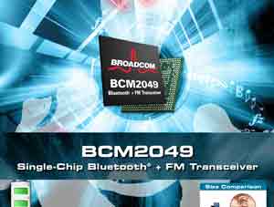 【產(chǎn)通社,10月24日訊】全球有線和無線通信半導(dǎo)體市場領(lǐng)導(dǎo)者——博通公司(Broadcom;Nasdaq:BRCM)消息,手機(jī)制造商正在尋求在手機(jī)上提供可與先進(jìn)的MP3播放器類設(shè)備相匹敵的音頻及多媒體體驗(yàn),且不影響電池使用壽命的解決方案。為此,公司發(fā)布了最新款整合芯片BCM2049,它在單個(gè)硅芯片(65nm)上集成了Bluetooth V2.1 + 增強(qiáng)數(shù)據(jù)率(EDR)基帶、射頻和軟件以及一個(gè)高性能的調(diào)頻立體聲無線電收發(fā)器,提供一種更好、更加靈活的藍(lán)牙兼調(diào)頻連接性解決方案,可使上述應(yīng)用成為現(xiàn)實(shí)。