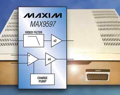 相比之下,MAX9597是完整的SCART方案,專為實(shí)現(xiàn)低功耗而設(shè)計(jì)。該款完全集成器件的音頻、視頻電路均采用+3.3V電源供電,只有低速開(kāi)關(guān)信號(hào)部分需要+12V電源。Maxim的DirectDrive技術(shù)通過(guò)內(nèi)部電荷泵對(duì)+3.3V電源反向,產(chǎn)生-3.3V電源,從而提供足夠的電壓擺幅,以支持2.0VRMS音頻信號(hào)。