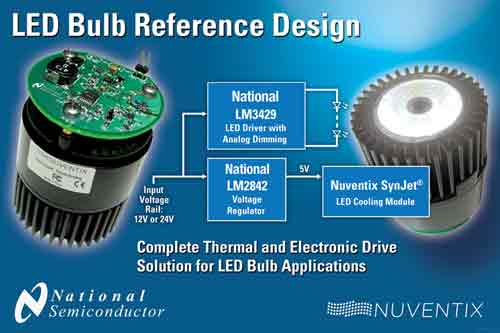 【產(chǎn)通社,5月13日訊】美國(guó)國(guó)家半導(dǎo)體公司(National Semiconductor)網(wǎng)站消息,已經(jīng)與Nuventix公司聯(lián)合推出一款采用驅(qū)動(dòng)電路搭配熱能管理模塊的全新LED參考設(shè)計(jì)。該產(chǎn)品可以簡(jiǎn)化高亮度LED燈泡的開(kāi)發(fā)流程,而且更方便用戶將安裝在標(biāo)準(zhǔn)插座內(nèi)的白熾燈和小型霓虹燈替換為L(zhǎng)ED燈。