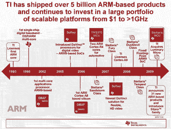 TI ARM戰(zhàn)略發(fā)展的關(guān)鍵在于高度的可擴(kuò)展性。隨著軟件成本占新產(chǎn)品總開發(fā)成本的比例達(dá)到50%,TI深刻認(rèn)識到,設(shè)計人員必須在一次性開發(fā)工作基礎(chǔ)上同時滿足多種產(chǎn)品的設(shè)計需求才能在產(chǎn)品上市進(jìn)程及降低成本方面保持良好的競爭力。通過推出涵蓋了前后數(shù)代代碼兼容型ARM架構(gòu)的廣泛的嵌入式ARM器件,TI使客戶不僅能擴(kuò)展性能、充分利用多種外設(shè)和顯著降低系統(tǒng)成本,還能為實(shí)現(xiàn)差異化特性和未來靈活性預(yù)留充分的發(fā)展空間。