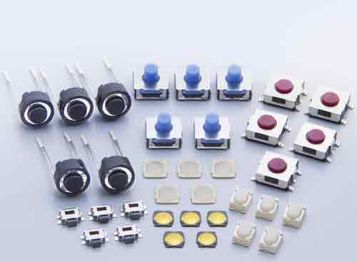 TACT Switch的基本功能是只有按下時(shí)才通電,主要被用作數(shù)字設(shè)備的輸入操作用開關(guān)。每次按下時(shí)就產(chǎn)生“咔嚓、咔嚓”的卡位感,產(chǎn)生從柔和到硬質(zhì)的多種推壓感覺。目前廣泛地被用于手機(jī)、數(shù)碼相機(jī)上以及汽車導(dǎo)航系統(tǒng)、汽車音響和控制板周圍的按鈕操作部上,在我們的日常生活中還被用于電梯的按鈕、自動(dòng)售貨機(jī)的商品選擇按鈕等上。