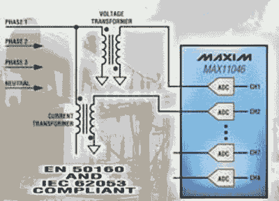 MAX11046是業(yè)內(nèi)僅有的一款16位(無誤碼)、8通道、同時(shí)采樣SAR ADC,能夠提供優(yōu)于IEC 62053標(biāo)準(zhǔn)規(guī)定的0.2級精度要求的性能,并滿足EN 50160標(biāo)準(zhǔn)規(guī)定的6kV瞬態(tài)電壓要求。