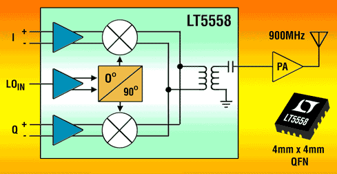 凌特公司(Linear Technology)5月18日推出LT5558新型高性能正交調(diào)制器,為從基帶到850-965MHz頻帶的直接轉(zhuǎn)換而優(yōu)化,可為GSM、EDGE、CDMA2000基站和900MHz RFID閱讀器組成經(jīng)濟(jì)的解決方案。 LT5558的I(同相)和 Q(正交相位)基帶輸入提供了高阻抗和一個(gè)2.1V的共模電壓,從而實(shí)現(xiàn)了高輸入信號(hào)驅(qū)動(dòng)電平以及至有源濾波器的便利基帶耦合。其直接至射頻發(fā)送器架構(gòu)使基站設(shè)計(jì)師能夠?qū)崿F(xiàn)高性能,同時(shí)減少器件數(shù)、縮小解決方案尺寸并節(jié)省系統(tǒng)成本。該產(chǎn)品具有卓越的線性度,在900MHz時(shí)的OIP3(輸出3階截取點(diǎn))為22.4dBm,OIP2(輸出2階截取點(diǎn))為65dBm。此外,LT5558具有-158dBm/Hz的低噪聲層,鏡頻抑制為 -49dBc,LO泄漏為-43.7dBm。這個(gè)器件滿足或超過(guò)了GSM蜂窩基站以及其它高性能無(wú)線基礎(chǔ)設(shè)施發(fā)送器的動(dòng)態(tài)范圍要求。 LT5558具有兩個(gè)匹配的高線性度混頻器、一個(gè)精確0o和90o移相器、一個(gè)具集成緩沖器的50Ω LO輸入和一個(gè)輸出在600MHz至1100MHz頻帶范圍內(nèi)匹配到50Ω的片上射頻變壓器。該射頻變壓器匯總來(lái)自I和Q通道混頻器輸出的已調(diào)制信號(hào),在無(wú)需外部匹配組件的情況下,將所得的差分信號(hào)轉(zhuǎn)換成單端、50Ω輸出。 兩個(gè)片上混頻器已進(jìn)行很好的平衡,具有卓越的LO泄漏性能。在LO輸入驅(qū)動(dòng)電平為0dBm時(shí),于900MHz射頻輸出的泄漏在未校準(zhǔn)情況下僅為-43.7dBm。類似地,片上精確移相器的準(zhǔn)確度很高(失配誤差小于0.5o),從而實(shí)現(xiàn)了-49dBc的未校準(zhǔn)鏡頻抑制性能。 LT5558用單一5V電源工作。典型工作電流為108mA。該器件還可以用ENABLE引腳關(guān)斷。禁止工作時(shí),該芯片最多消耗50uA靜態(tài)電流以節(jié)省功率。就半雙工或時(shí)分復(fù)用工作模式而言,該芯片可以用ENABLE引腳迅速接通和斷開(kāi)。 LT5558采用16引腳4x4mm表面貼裝QFN封裝。以1,000片為單位批量購(gòu)買,每片起價(jià)為5.35美元,并立刻有現(xiàn)貨供應(yīng)。 (完)