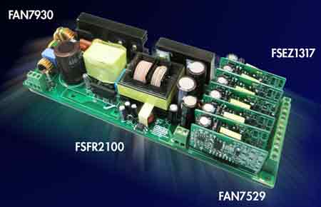 • PWM控制器,包括帶有MOSFET的獨立式和高集成度解決方案,如非對稱半橋控制器FSFA2100、包含LLC諧振控制器FAN7621,以及獨立式LLC諧振控制器FAN7621