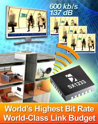 【產(chǎn)通社,10月7日訊】升特公司(Semtech;納斯達(dá)克: SMTC)消息,其SX1233可編程ISM頻段收發(fā)器擁有全球最高的碼率(600kbps)以及世界級(jí)的鏈路預(yù)算(137kB)、超低功耗、出色的鄰道抑制(ACR)以及抗阻塞能力。諸多特性的結(jié)合提供了高帶寬、射頻鏈路可靠性、RF健壯性以及強(qiáng)大的干擾抑制能力。對(duì)于家用以及建筑自動(dòng)化系統(tǒng)、智能讀表器、傳感器、警報(bào)器、安保系統(tǒng)、無(wú)線監(jiān)控以及遠(yuǎn)程數(shù)據(jù)測(cè)量網(wǎng)絡(luò)中的長(zhǎng)距離無(wú)線視頻與影像應(yīng)用,這些都是必要的特性。