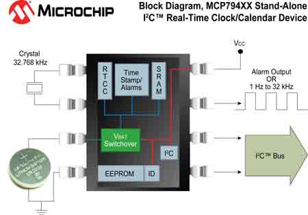 【產(chǎn)通社,11月10日訊】美國微芯科技公司(Microchip Technology;納斯達(dá)克股市代號:MCHP)消息,其第一款獨立IC實時時鐘/日歷(RTCC)系列以低成本實現(xiàn)了高度集成,包括存儲容量充足的片上EEPROM和SRAM。而且,EEPROM的用戶可鎖定部分可存儲一個64位可編程惟一ID,即可以在出廠時就將一個MAC地址燒入其中。這些器件具備用于時鐘校準(zhǔn)的數(shù)字微調(diào),以及在極低電壓和電流條件下支持備用電源的電池切換功能。通過在一個器件中集成所有這些功能,MCP794XX系列不僅減少了元件數(shù)量,也降低了各種應(yīng)用的成本。