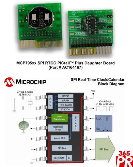 MCP795XX SPI RTCC PICtail Plus子板(部件編號AC164147)將于2012年2月開始供貨,屆時可以通過microchipDIRECT(http://www.microchip.com/get/FU5C)訂購。該板可以與Microchip的Explorer 16開發(fā)板(部件編號DM240001)和PIC18 Explorer板(部件編號DM183032)配合使用,能夠幫助設計人員在其應用中演示MCP795WXX/BXX RTCC器件。