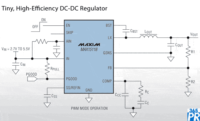 【產(chǎn)通社,3月27日訊】Maxim Integrated Products (NASDAQ:MXIM)官網(wǎng)消息,其業(yè)內(nèi)尺寸最小的電流模式、同步整流DC-DC轉(zhuǎn)換器MAX15058/MAX15108/MAX15112/MAX15118,輸出電流分別為3A、8A、12A和18A。器件工作在固定脈寬調(diào)制(PWM)模式時,非常適合電信、網(wǎng)絡(luò)、服務(wù)器和基站應(yīng)用;工作在跳脈沖模式時,能夠降低輕載條件下的系統(tǒng)功耗,適用于筆記本電腦和單節(jié)電池供電產(chǎn)品。