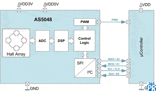 奧地利微電子AS5048磁性編碼器芯片便于單片機(jī)用戶精確測(cè)量角度
