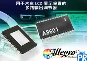 【產(chǎn)通社,5月6日訊】Allegro MicroSystems公司官網(wǎng)消息,其A8601固定頻率的多路輸出電源通過(guò)了AEC-Q100汽車(chē)級(jí)認(rèn)證,專(zhuān)門(mén)面向資訊娛樂(lè)應(yīng)用,例如LCD顯示偏置。A8601專(zhuān)為滿(mǎn)足對(duì)穩(wěn)健的汽車(chē)解決方案的需求而設(shè)計(jì),與現(xiàn)有的解決方案相比使用的部件更少,卻提供了更高效的功率變換。