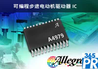 【產(chǎn)通社,5月10日訊】Allegro MicroSystems公司官網(wǎng)消息,其A4979可編程步進電動機驅(qū)動器IC專門面向辦公自動化、工業(yè)及消費市場,是一款靈活的微步電動機驅(qū)動器,內(nèi)置轉換器,易于操作,具有更佳的可編程性和診斷功能。A4979采用單芯片解決方案,能夠以全步進、半步進、四分之一及十六分之一步進模式驅(qū)動雙極步進電動機,工作電壓和電流分別高達50V及1.5A。