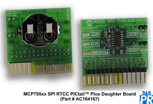 MCP795XX SPI RTCC PICtail Plus子板(部件編號(hào):AC164147)預(yù)期將于8月供貨。該板可與Microchip Explorer 16開發(fā)板(部件編號(hào):DM240001)和PIC18 Explorer板(部件編號(hào):DM183032)一起使用,幫助設(shè)計(jì)人員演示其應(yīng)用中的MCP795XX和WXX RTCC器件。