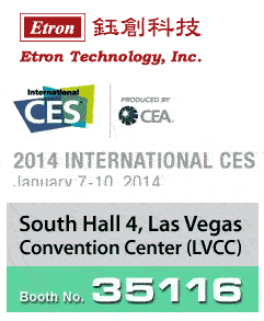 【產(chǎn)通社,12月27日訊】鈺創(chuàng)科技(Etron Technology, Inc.)官網(wǎng)消息,其將參展2014 CES,展位號(hào)為L(zhǎng)VCC南4號(hào)館No.35116。