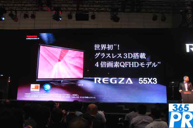 其中,EGZA 55X3 3D電視無需眼鏡,采用4K2K QFHD面板;REGZA DBR-M190藍光影碟機具有時間轉(zhuǎn)移功能,能夠錄制和暫存6個通道的數(shù)字廣播節(jié)目;REGZA Tablet AT700是目前世界上最薄、最輕的平板電腦。