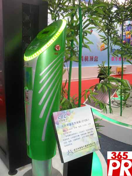 中國(guó)電子集團(tuán)旗下武漢中原電子展出的電動(dòng)車大功率直流充電柜