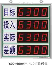 | LED數(shù)字管理顯示屏(電子看板)是專門為生產(chǎn)型企業(yè)設(shè)計的生產(chǎn)流水線數(shù)字顯示屏,用于標示當天或當班的計劃生產(chǎn)量、實際生產(chǎn)量、差異值、不良品、達成率、不良率等參數(shù)。其中計劃生產(chǎn)量等可以由計算控制輸入、鍵盤輸入或遙控輸入,實際生產(chǎn)量,不良品等通過檢測安裝在生產(chǎn)線上的紅外感應開關(guān)、行程開關(guān)等自動錄入或通過按鍵錄入,差異值、達成率、不良率等由看板內(nèi)部的單片機計算并顯示出來。LED數(shù)字管理看板的應用將有利于提高企業(yè)管理水平、降低企業(yè)的勞動力成本、激發(fā)員工的生產(chǎn)積極性等從而使企業(yè)獲得更大的利潤空間。