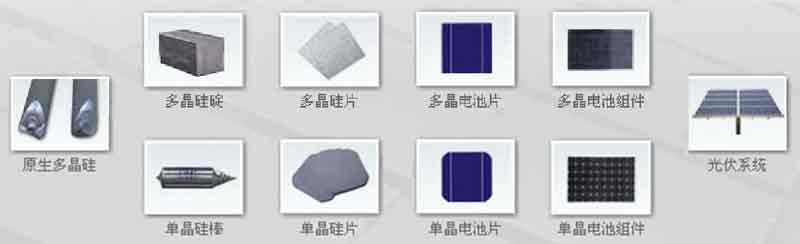 大部分光伏組件的生產(chǎn)都是從超純?cè)瞎璧纳a(chǎn)開始,該超純?cè)瞎柰瑫r(shí)也是用于生產(chǎn)集成電路(比如電腦或記憶芯片)的原料,是通過對(duì)石英砂多次溶解和清洗獲得。超純?cè)瞎璞蝗廴诔梢簯B(tài)硅后鑄成硅錠,再被切成薄片,名為硅片。一般來說,太陽能電池制造商都要購(gòu)買單晶硅片和多晶硅片,加工成太陽能電池片,再將電池片銷售給太陽能組件制造商,或者自己組裝成太陽能組件,供安裝公司或者施工單位使用。